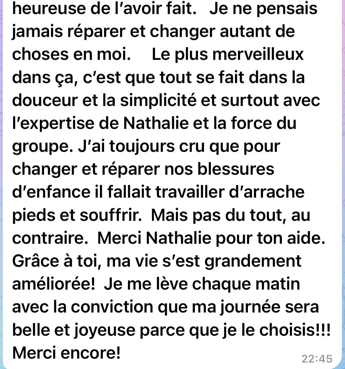 Grâce à mes années d’expertise dans l’accompagnement en gestion émotionnelle et la régulation du système nerveux, j’ai conçu ce programme pour t’offrir un outil concret, simple et efficace afin que tu puisses faire un switch rapide de ton énergie.