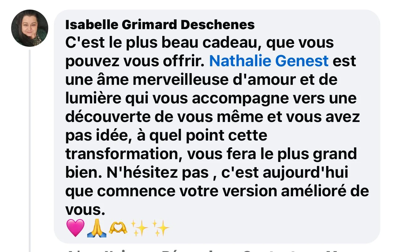 Le succès de ta démarche repose sur ton implication et ton engagement. Je m’engage à donner mon 100% pour toi. Si tu appliques les enseignements, que tu participes et t’impliques dans le processus, tu obtiendras de fabuleux résultats!